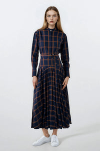 Valentina Dress Navy with Cognac Plaid #8160PLD